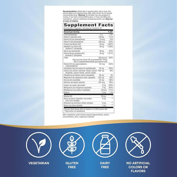 Desarrollado por los doctores Jonathan Wright y Alan Gaby, este producto no solo promete, cumple. Con nutrientes que apoyan la densidad y salud ósea, estarás en sintonía con tus necesidades corporales. 🌱