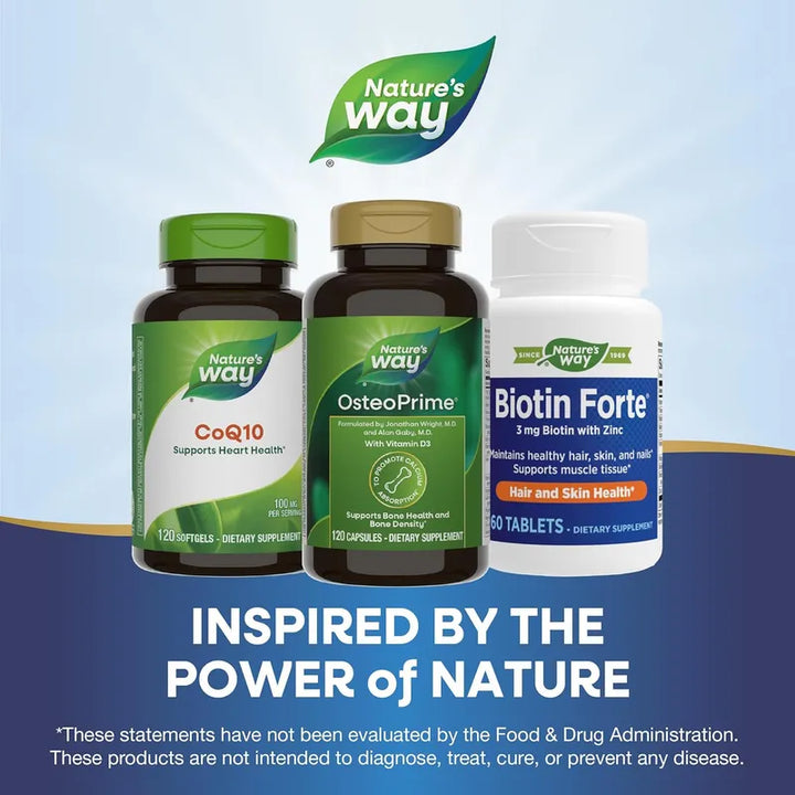 La confianza que Nature's Way ha cultivado se refleja en cada uno de sus productos. Estas cápsulas no contienen gluten, levadura, trigo, soja, lácteos o colorantes artificiales, garantizando así una opción limpia y segura para tu organismo. 🛡️