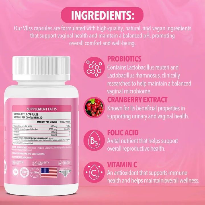 Estas cápsulas están diseñadas para liberar probióticos beneficiales y extractos naturales directamente en tu sistema, equilibrando tu flora vaginal y promoviendo una salud óptima.