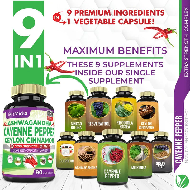 Capsulas Pimienta De Cayena Ashwagandha Cuidado Cardiaco Vitalidad Natural