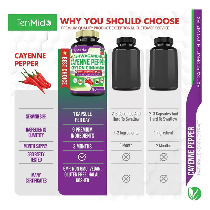 ¿Te sientes fatigado, falto de energía y en busca de una solución natural para revitalizar tu bienestar general? Las Cápsulas de Pimienta de Cayena, Ashwagandha y otros ingredientes potentes llegan para transformar tu vida de manera significativa. Esta magnífica mezcla de ingredientes naturales es el aliado perfecto para quienes buscan balancear su cuerpo y mente, todo en un solo suplemento.