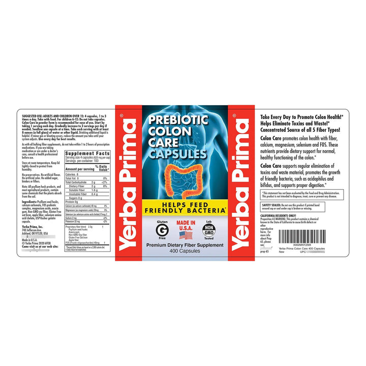 Capsulas Prebioticas Cuidado Colon 400 Unidades Cinco Fibras Suplemento Dietetico