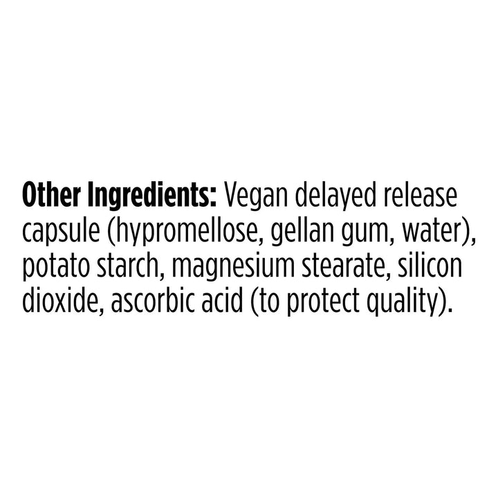 - Las cápsulas resisten el ácido estomacal gracias a su tecnología de liberación retardada.