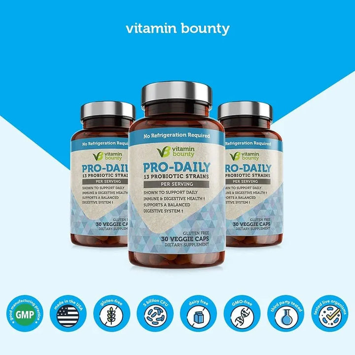 Imagínese un día lleno de energía, sin preocupaciones digestivas que interfieran con su bienestar. Las Cápsulas Probióticas Diarias de Vitamin Bounty están aquí para transformar ese sueño en realidad. Con una innovadora formulación de 13 cepas probióticas, este suplemento está diseñado para apoyar su salud digestiva de forma integral.