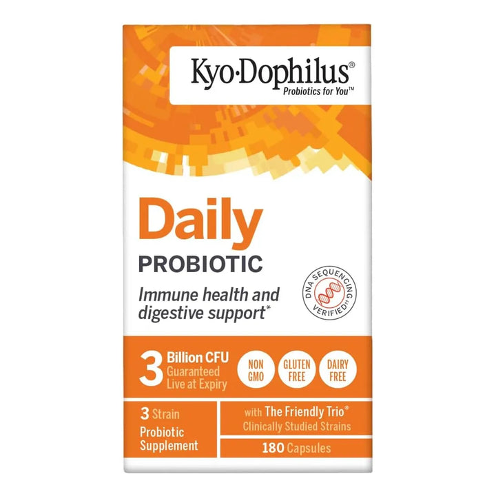 Las cápsulas probióticas Kyolic Kyo-Dophilus contienen una mezcla única de tres cepas bacterianas beneficiosas que colonizan tu intestino, ayudando a restaurar el equilibrio de tu microbiota. Estas bacterias 'amigables' compiten con las dañinas, reduciendo molestias digestivas y mejorando la absorción de nutrientes. Además, estimulan la producción de células inmunitarias, fortaleciendo tus defensas naturales.