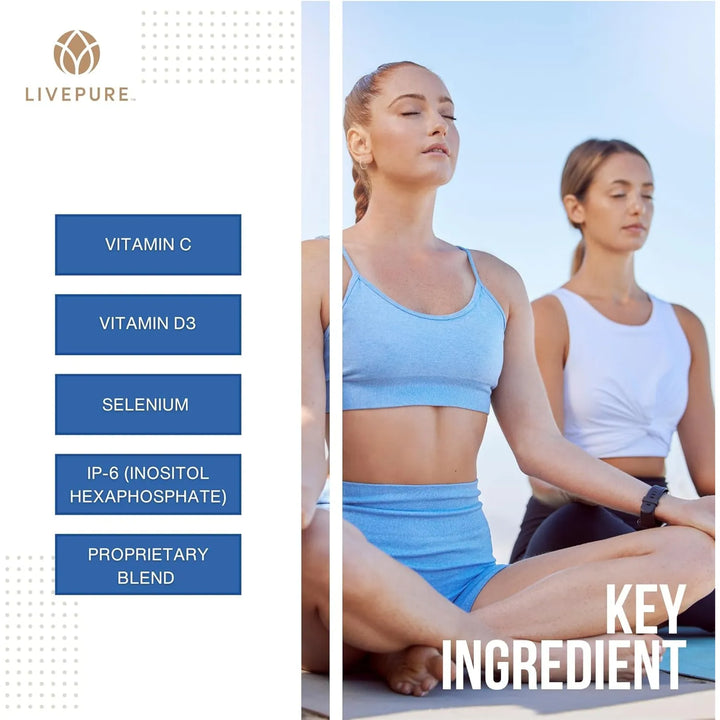 Pure Immune6 actúa en múltiples frentes para fortalecer tu sistema inmunológico. El IP6 (Inositol hexafosfato) neutraliza los radicales libres que dañan tus células, mientras que la vitamina C estimula la producción de glóbulos blancos, tus soldados internos contra infecciones. La vitamina D3 regula la respuesta inmune y el selenio potencia la acción antioxidante. Juntos, estos ingredientes crean una barrera protectora que te mantiene saludable.