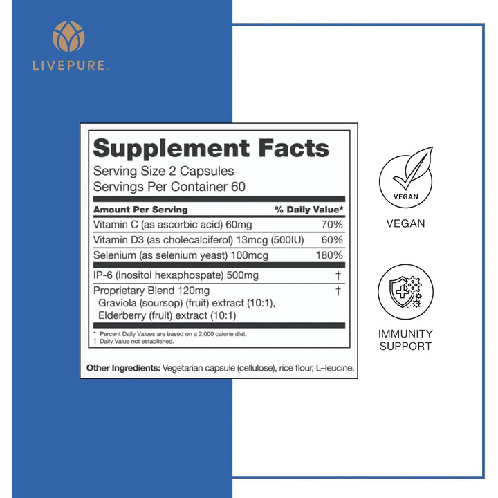 Capsulas Pure Immune6 120 Unidades Suplemento Inmunologico Vitamina C D3 IP6 Selenio