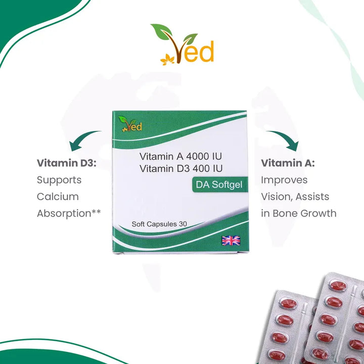 Cada cápsula blanda te proporciona 4000 IU de Vitamina A y 400 IU de Vitamina D3. Estas potentes combinaciones son ideales para fortalecer tu sistema inmunológico, mejorar la salud ocular y optimizar la absorción de calcio en tu cuerpo. Olvídate de las preocupaciones de salud y concéntrate en lo que amas.
