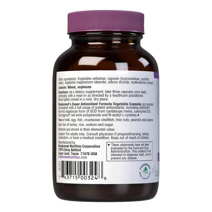 Imagina un estilo de vida lleno de energía y vitalidad. Las cápsulas Súper Antioxidantes Vegetarianas de BlueBonnet te ofrecen justamente eso. Estas cápsulas son mucho más que un simple suplemento; son tu pasaporte a una vida más saludable y plena.
