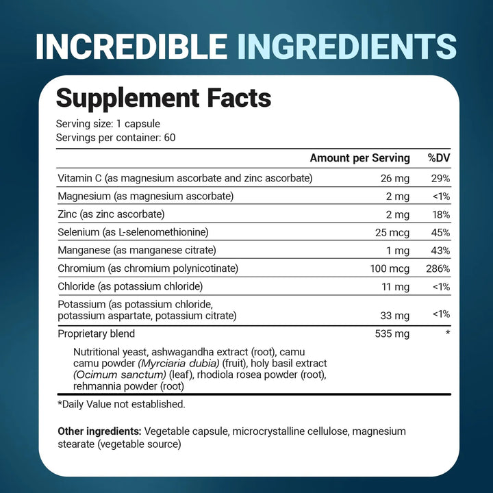 Imagina despertar cada día con claridad mental, sintiéndote renovado y listo para enfrentar cualquier desafío. Este producto combina ingredientes de alta calidad como ashwagandha, rhodiola rosea y vitamina C, trabajando en sinergia para regular el cortisol, reducir el estrés y mejorar tu bienestar general. No es solo un suplemento, es una inversión en tu salud a largo plazo.