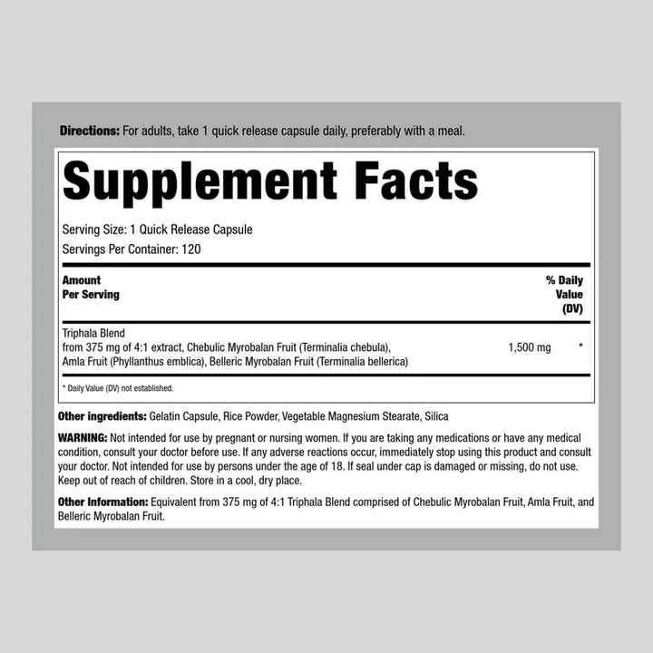Capsulas Triphala 1500 Mg 120 Unidades 100 Natural Suplemento Sin Gluten