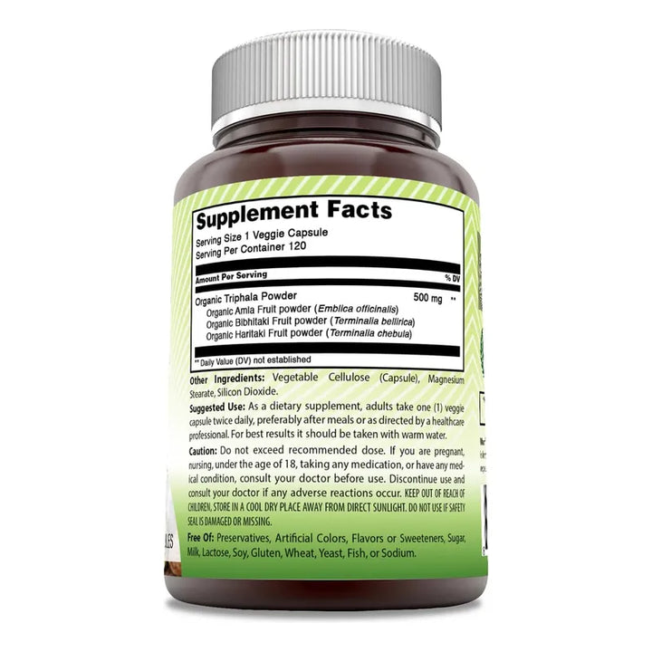 Cápsulas Triphala 500 Mg Vegetales Naturales 120 U