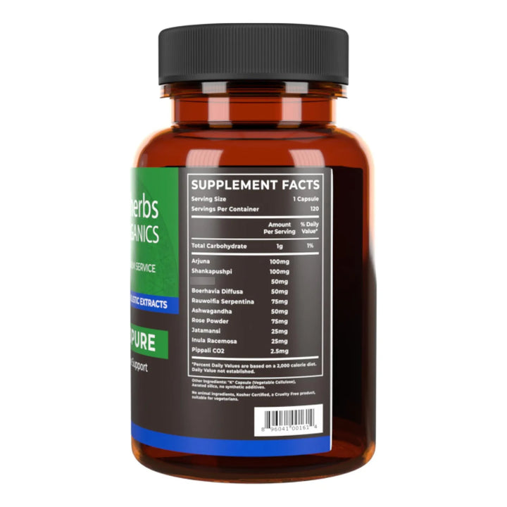 Capsulas Vegetales Cardiopure Con Ashwagandha Rauwolfia Y Extracto Arjuna 120 Unidades
