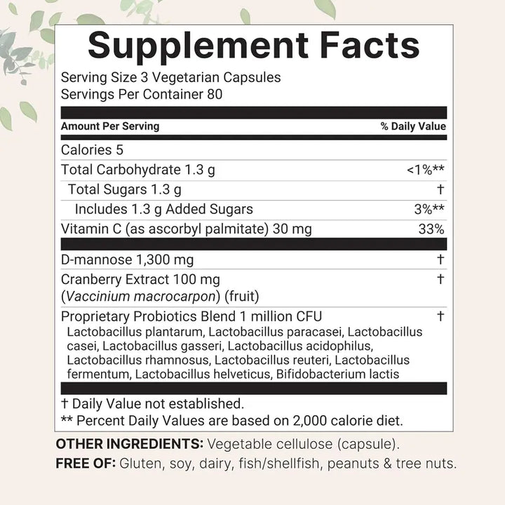 Cápsulas Vegetales D-Manosa Con Arándano Apoyo Urinario Saludable