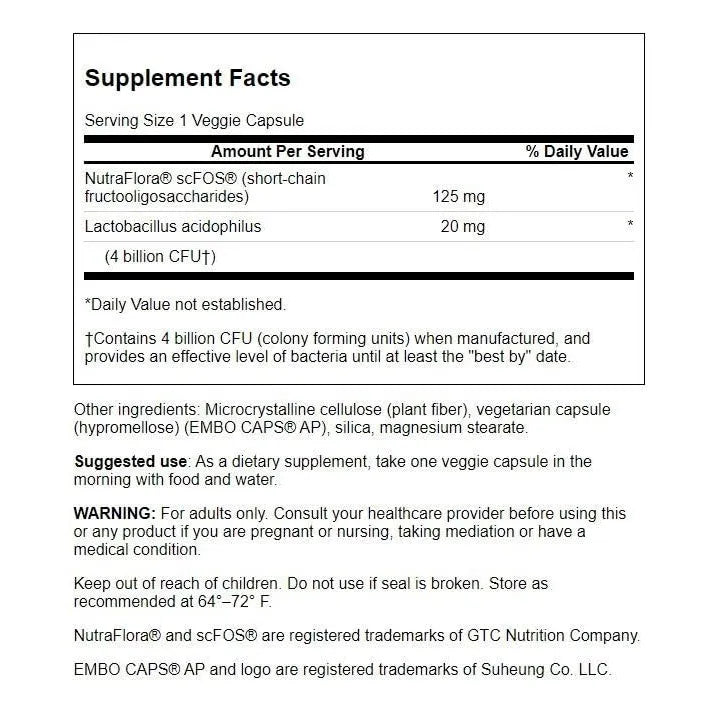 Imagina un mundo donde la salud digestiva ya no sea una preocupación diaria, sino una fuente de bienestar constante, impulsando cada parte de tu vida. Nuestra revolución comienza con las Cápsulas Vegetales Prolacto Acidophilus, un aliado poderoso que trabaja para ti las 24 horas del día. Con 4 mil millones de CFU de apoyo intestinal en cada cápsula, no solo estás comprando un suplemento, estás invirtiendo en tu tranquilidad personal.