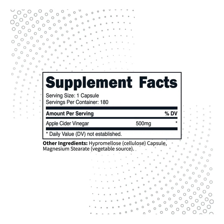 Las cápsulas son el vehículo perfecto para quienes viven con prisa. Diseñadas para encajar en tu rutina diaria, cada dosis de vinagre de sidra de manzana está lista para ser consumida en un instante, asegurando que no debas sacrificar tiempo o esfuerzo. Además, su fabricación bajo estrictos estándares GMP y certificación NSF garantiza que estás eligiendo un producto puro y potente.