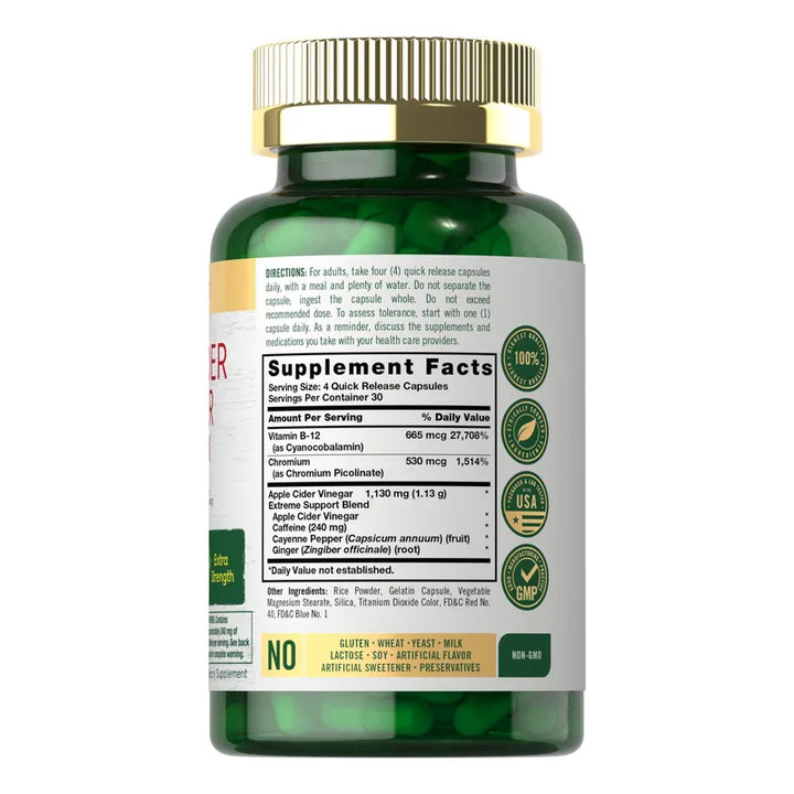 Capsulas Vinagre Sidra Manzana Cayena Jengibre Suplemento Sin Gluten Ni Ogms