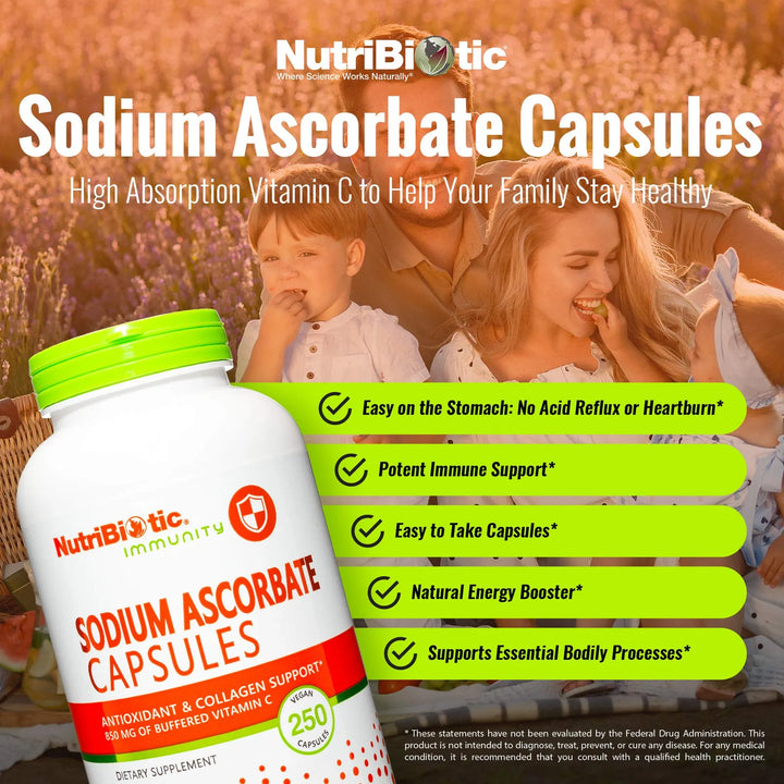 Capsulas Vitamina C Tamponada Ascorbato Sodio 250 Unidades Veganas No Acidas