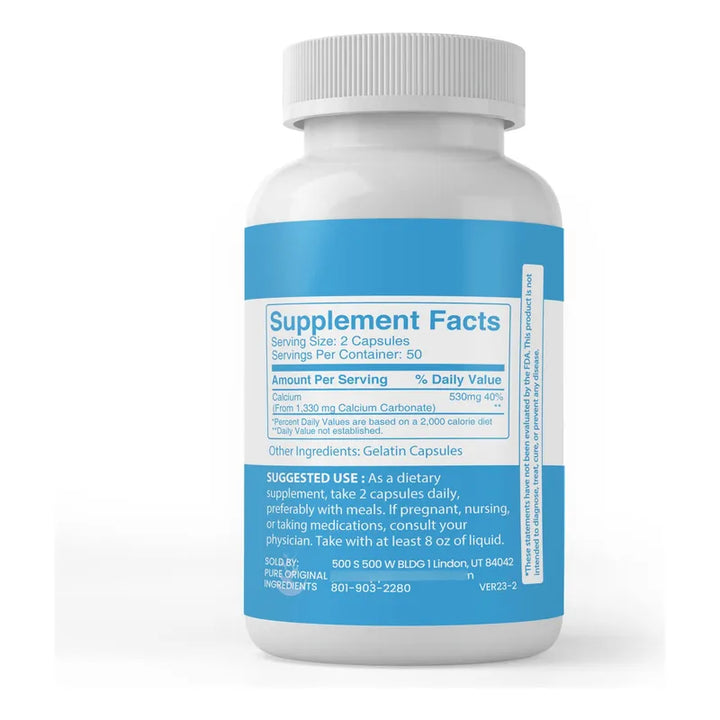 Carbonato De Calcio 100 Cápsulas Puro Sin Aditivos Ni Relleno