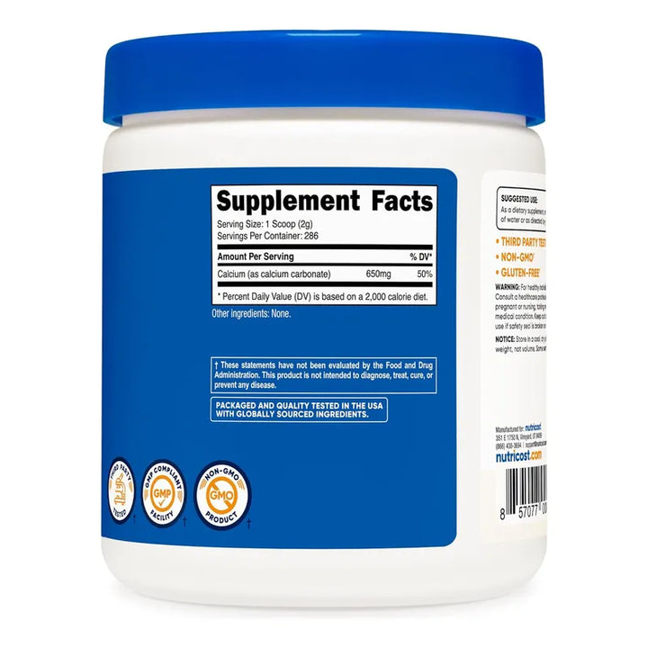 ¿Sientes que es complicado encontrar un suplemento de calcio confiable y de alta calidad? Con nuestro polvo de carbonato de calcio, cada porción de 650 mg garantiza que estás nutriendo tu cuerpo con lo mejor. Libre de OMG y sin gluten, es ideal para quienes buscan productos puros y testados. Olvídate de aquellos suplementos que te dejan con dudas. Nuestro producto garantiza calidad, fabricado en instalaciones registradas por la FDA y cumple con las BPM.