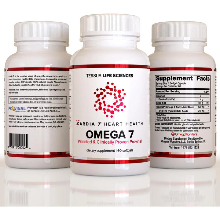 Cardia 7 Heart Health Omega 7 Suplemento Cardiaco Sin Olor a Pescado 60 Geles