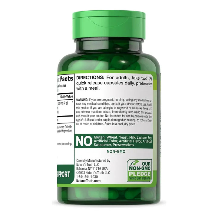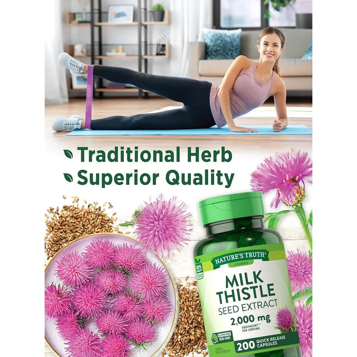 Nature's Truth Cardo Mariano te ofrece una potente dosis de 2000 mg de extracto de semilla de cardo mariano por porción, respaldada por generaciones de experiencia en suplementos naturales.