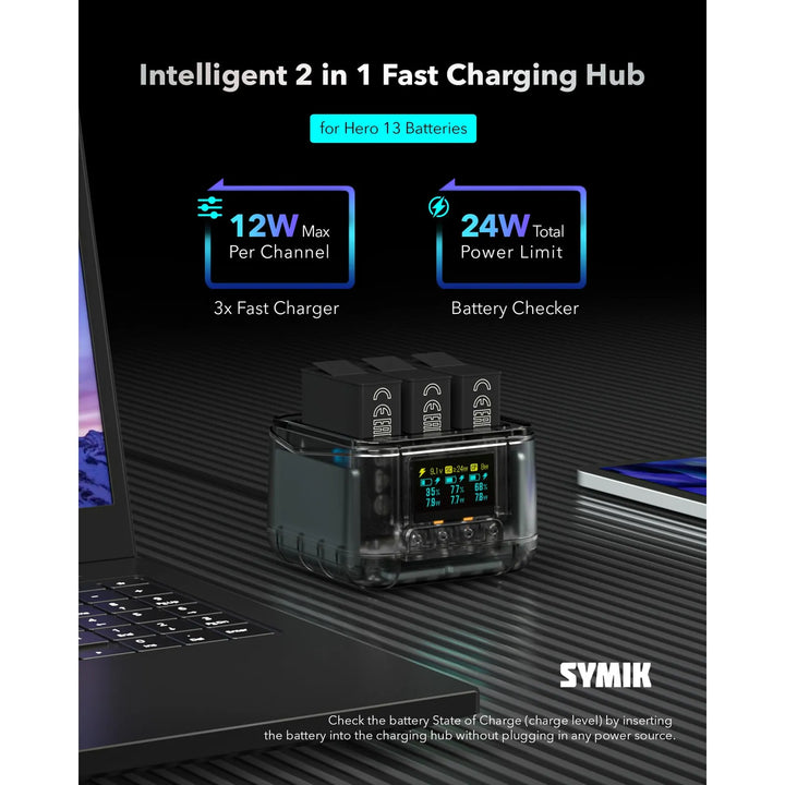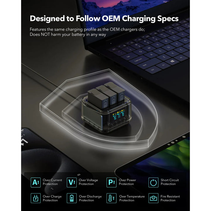 Cargador Batería GoPro Hero 13 Pantalla OLED 24W Carga Rápida Triple
