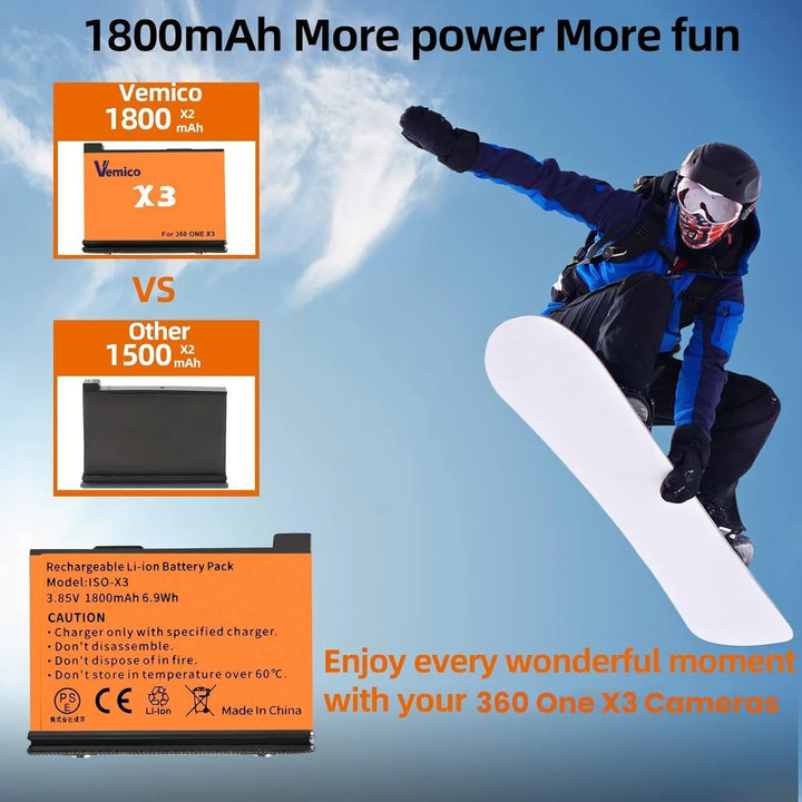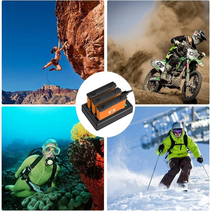 Imagina capturar cada momento épico sin preocuparte por quedarte sin batería. El Cargador de Batería X3 2x1800mAh es tu aliado perfecto para aventuras sin límites. Diseñado para la cámara de acción 360 ONE X3, este kit no solo duplica tu capacidad de grabación, sino que también optimiza tu tiempo con carga simultánea de 3 baterías. ¿Listo para dejar atrás los cortes inesperados y disfrutar de una grabación continua?
