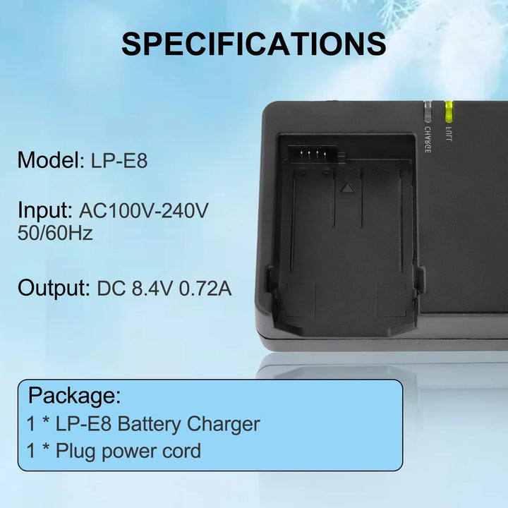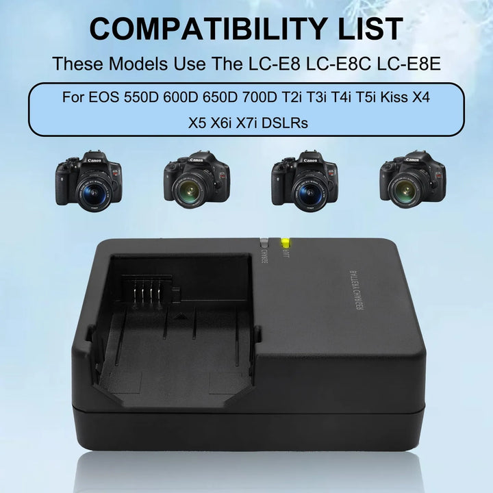 Imagina estar en medio de una sesión fotográfica increíble, capturando momentos únicos, y de repente... tu cámara se apaga. La frustración es real, pero tiene solución. Con nuestro cargador de batería LC-E8 compatible con múltiples modelos Canon, nunca más tendrás que preocuparte por quedarte sin energía. Diseñado para fotógrafos apasionados como tú, que buscan confiabilidad y rendimiento en cada toma.