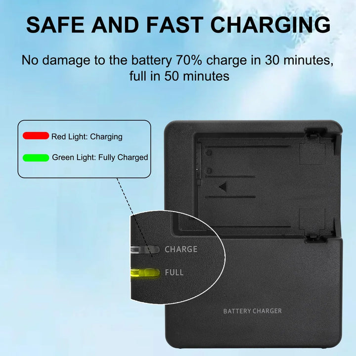 - 📦 Paquete Completo: Incluye 1 cargador de batería E8 y 1 cable cargador de EE. UU., todo lo que necesitas en un solo lugar.