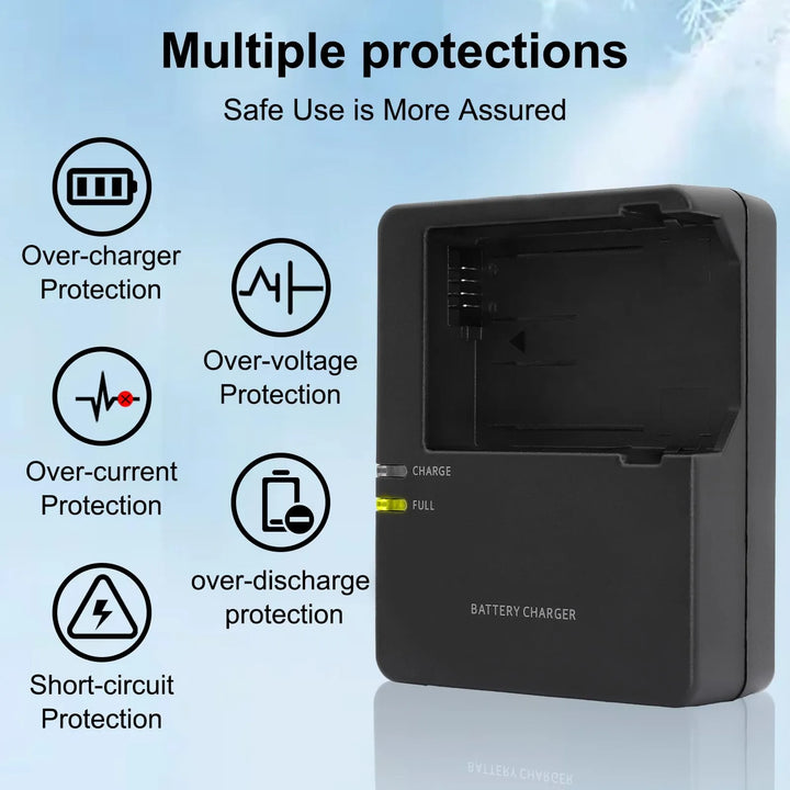 El cargador LC-E8 transforma la energía eléctrica de tu hogar en un flujo seguro y estable para tu batería. Su circuito interno inteligente regula el voltaje y la corriente, evitando sobrecargas y asegurando una carga óptima. Además, sus protecciones integradas actúan como un escudo, garantizando que ni tu cámara ni tú corran riesgos.