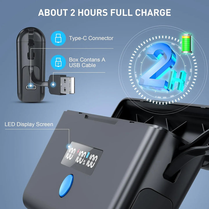El cargador utiliza tecnología de carga rápida USB-C para energizar hasta tres baterías simultáneamente. Conecta el cargador a una fuente de poder, inserta las baterías usando los clips incluidos, y observa cómo la pantalla LED te guía durante el proceso. En solo 2 horas, tendrás tus baterías listas para la próxima aventura.