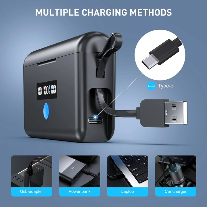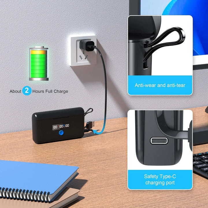 ¿Cansado de cargadores incómodos que ocupan espacio? Nuestro diseño plano y portátil se desliza fácilmente en tu bolsillo o mochila, mientras que el cable USB plegable y la entrada USB-C te garantizan comodidad en cualquier lugar. La libertad de movimiento nunca fue tan sencilla.