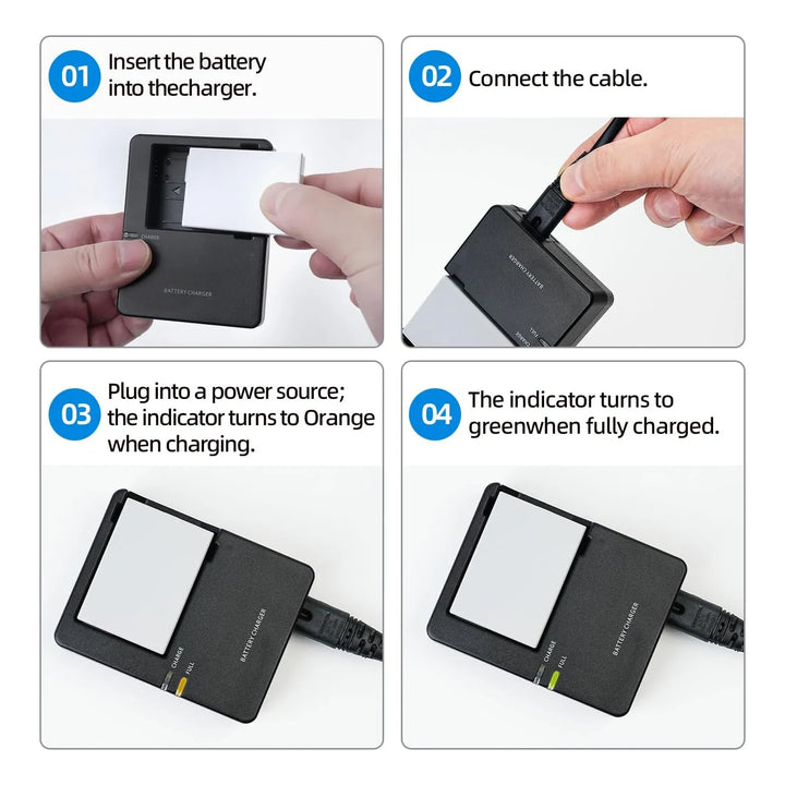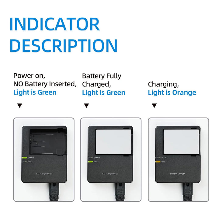 Este cargador convierte la energía eléctrica en un flujo estable y seguro para tus baterías LP-E8. Su tecnología de protección integrada regula el voltaje y la temperatura, asegurando una carga óptima sin riesgos. Las luces LED te guían: verde (listo), amarillo (cargando) y verde nuevamente (completado).