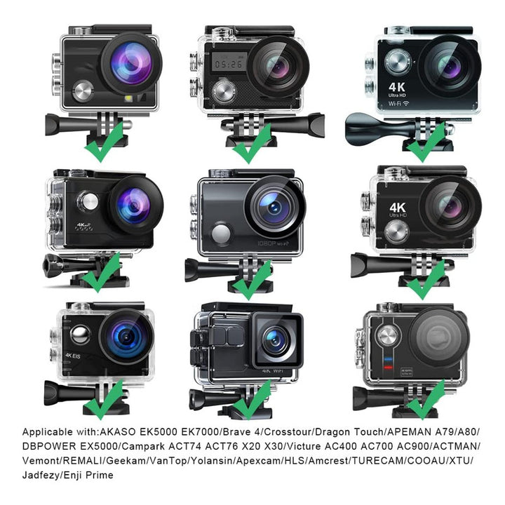 El diseño redondo es compatible con una amplia gama de cámaras como AKASO EK7000, Brave 4, y muchas más, ampliando tus opciones sin límite. 😊