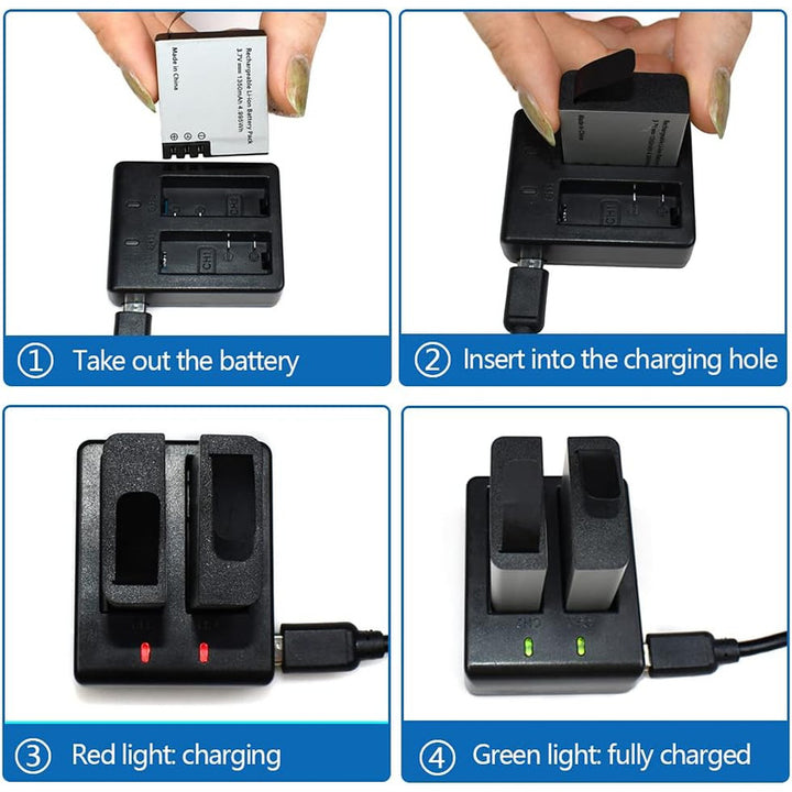 Cargador Para Cámara Acción Deporte Y Tres Baterías 1350mAh