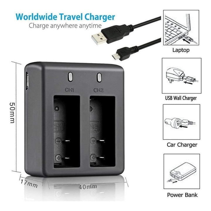 Explora nuevos horizontes con el Cargador para Cámaras de Acción de alta capacidad y rendimiento. ¡No dejes que tu aventura quede interrumpida!