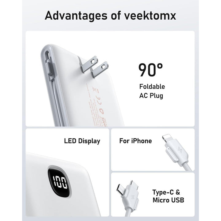 Cargador Portátil 10000 Mah USB C Veektomx Para iPhone y Android