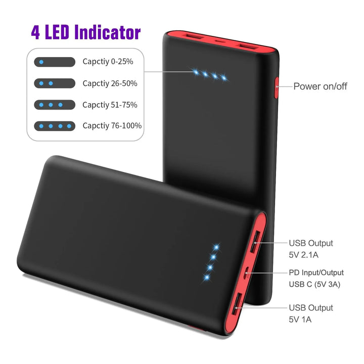 Viajes, camping, días largos en la oficina... este cargador está diseñado para adaptarse a tu vida. Con capacidad para cargar tu teléfono de 6 a 8 veces, olvídate de buscar enchufes o preocuparte por la batería. ¿Lo mejor? Sus 3 puertos USB te permiten cargar múltiples dispositivos a la vez, porque sabemos que hoy todos llevamos más de un gadget. 📱🔋🎧
