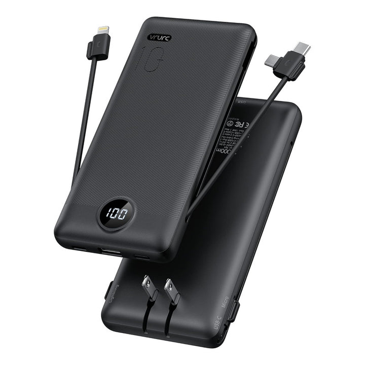 - 🔌 Cables Integrados: incluye un cable micro, USB C y para iPhone, perfecto para cualquier dispositivo.