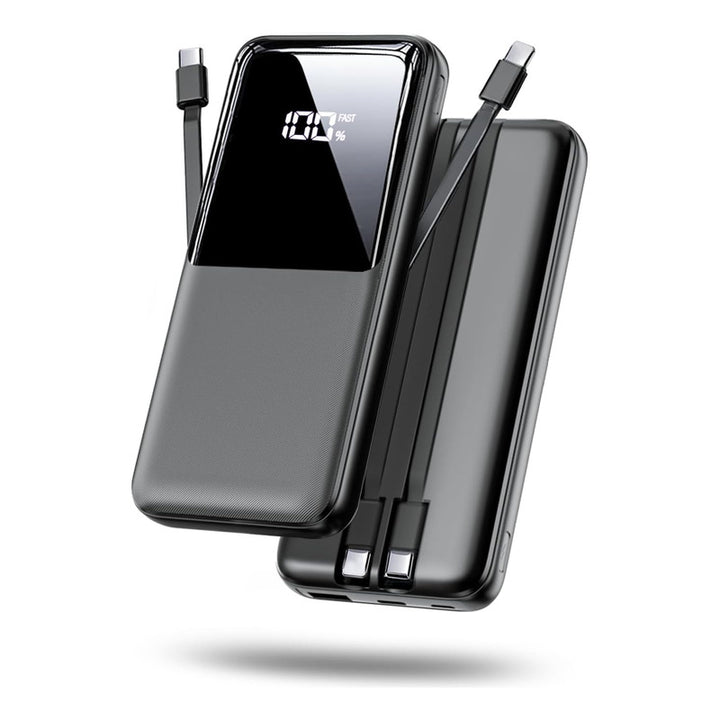 Nuestro cargador no solo es eficiente, sino también increiblemente conveniente. Con cables integrados para iOS y Tipo-C, y la capacidad de cargar dispositivos adicionales mediante los puertos, mantén todos tus dispositivos vitales funcionando sin el embrollo de múltiples cables. Ideal para aventureros, viajeros frecuentes, o incluso para el día a día.