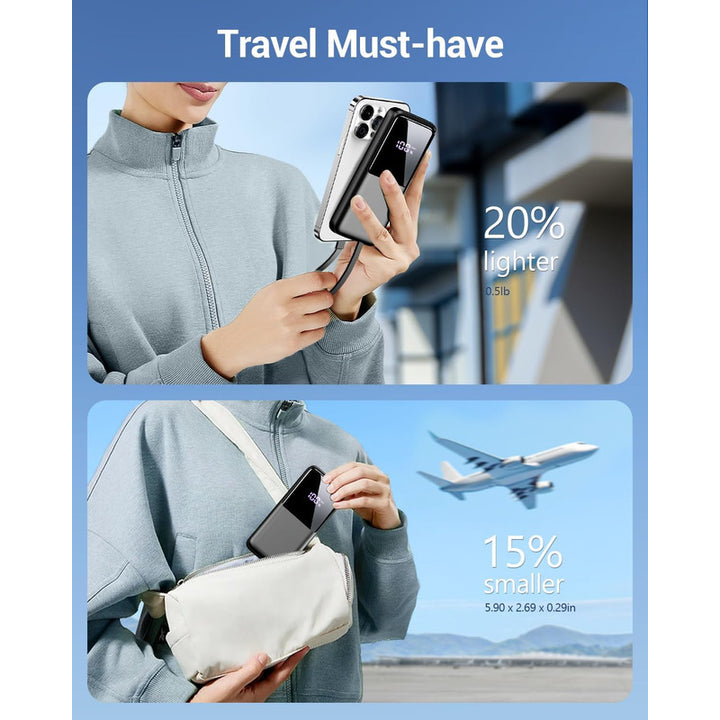 Gracias a su capacidad de carga rápida, este banco de energía te permite cargar múltiples dispositivos a la vez con una velocidad impresionante. Imagina cargar tu iPhone al 50% en solo 30 minutos, casi 3 veces más rápido que los cargadores convencionales. Ya no tendrás que esperar eternamente para que tus dispositivos se carguen; puedes maximizar tu tiempo y productividad.