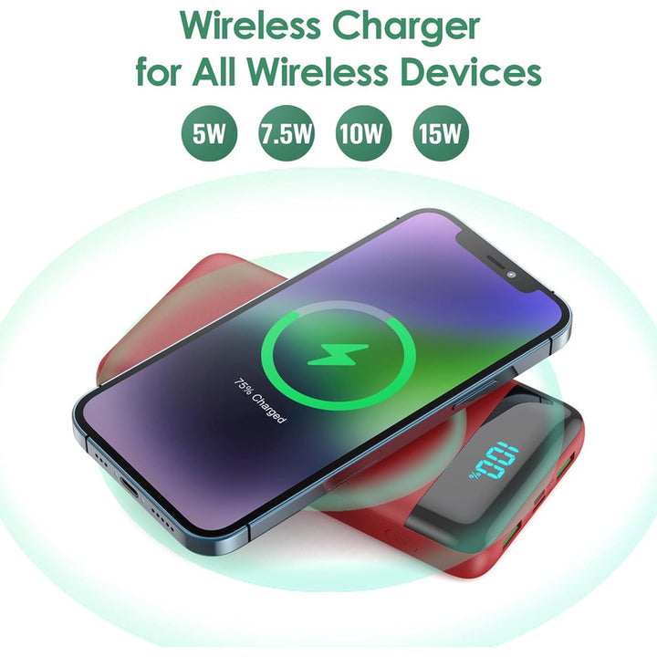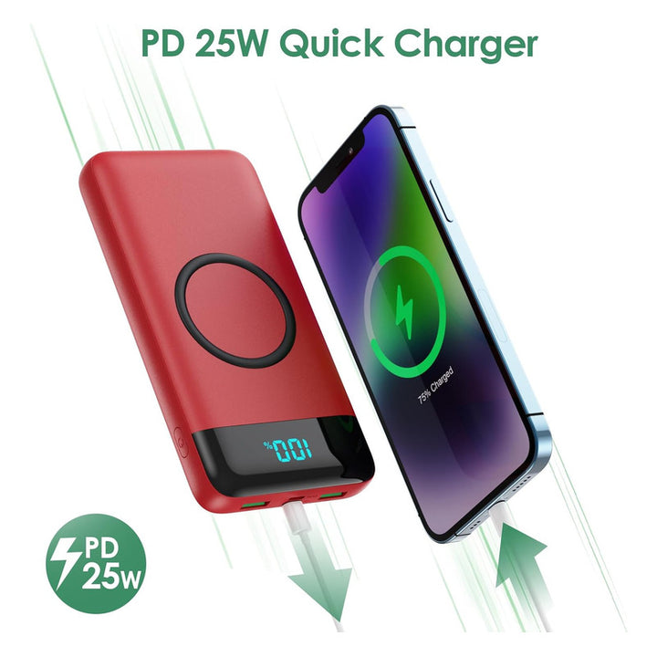 Imagina la libertad de cargar tus dispositivos donde sea que estés, sin el lío de los cables. Nuestro Cargador Portátil Inalámbrico Power Bank de 30,800 mAh te ofrece justo eso, combinando tecnologías avanzadas de carga inalámbrica de hasta 15 W y carga rápida por cable de 25 W, todo en un impresionante diseño rojo que grita sofisticación y funcionalidad.