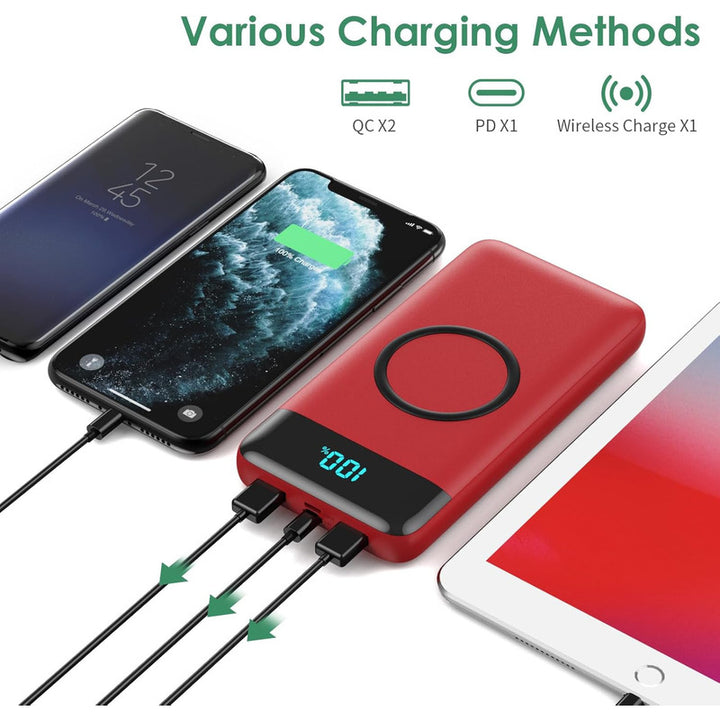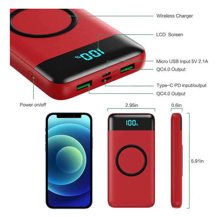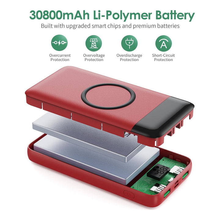 Cargador Portátil Inalámbrico Power Bank 30800mah 25w Rojo