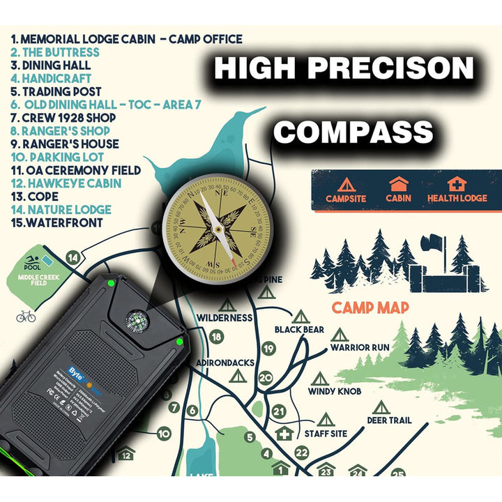 No es solo un cargador. Viene equipado con una brújula de alta precisión, linternas LED bajo modo SOS y un silbato para esas situaciones que requieran algo más que energía. Cuando salgas a explorar, lleva contigo este pequeño pero poderoso aliado.