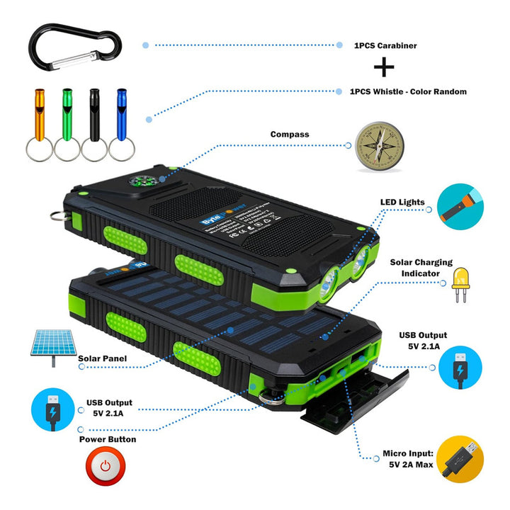 Cargador Portátil Solar 20000 Mah Verde Con Brújula y Linterna