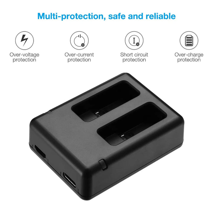 ¿Cansado de esperar horas para cargar una sola batería de tu GoPro mientras pierdes momentos increíbles? Imagina tener el poder de cargar dos baterías al mismo tiempo, sin preocuparte por sobrecargas y con la tranquilidad de un sistema inteligente que cuida de tu equipo. El cargador Powerextra compatible con GoPro HERO5, HERO6, HERO7, HERO8 y HERO 2018 es la solución que estabas buscando.