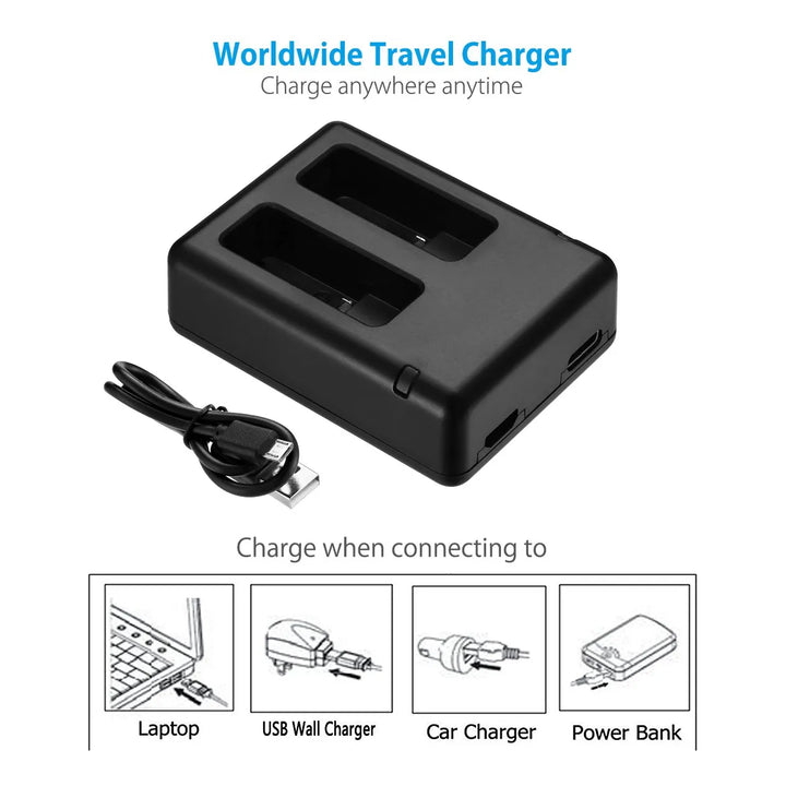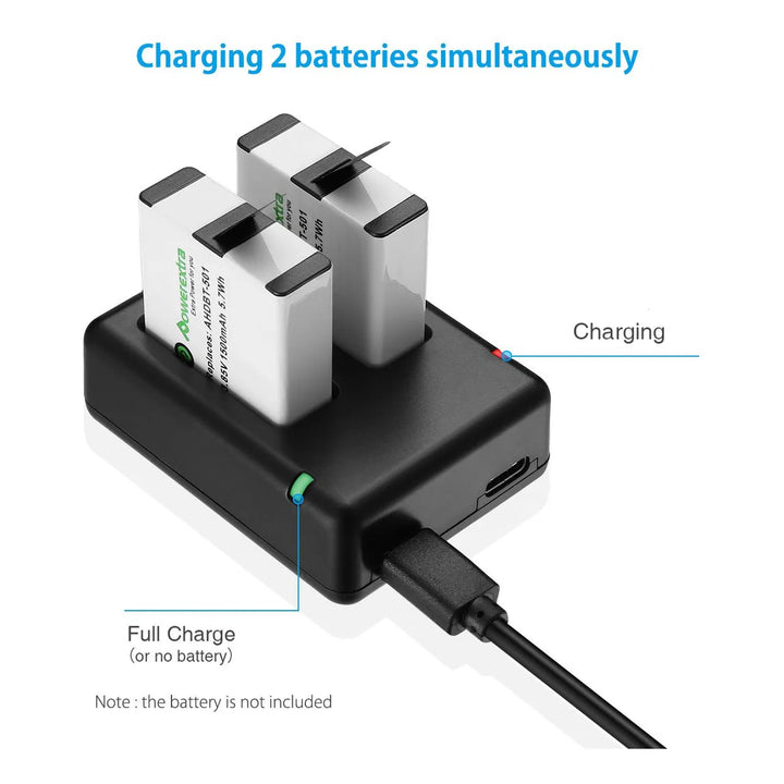 Cargador Powerextra Dual Para Gopro Hero5 Hero6 Hero7 Hero8 Carga Rapida Y Segura