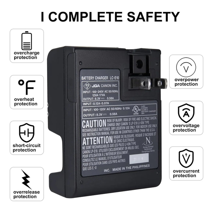 - Diseñado para carga rápida y segura de baterías LP-E10, LC-E10 y LC-E10C 🚀