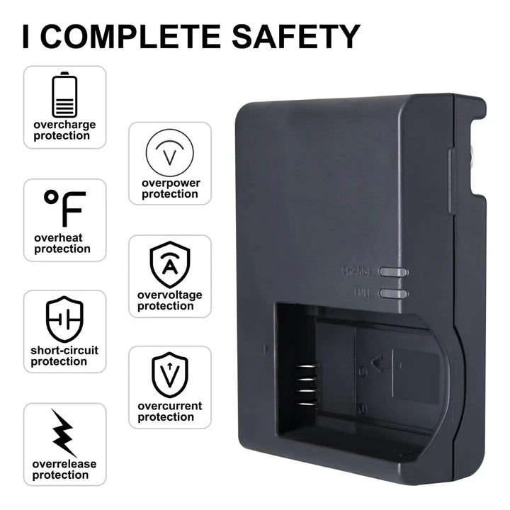 Imagina poder cargar tu batería en menos tiempo, sin preocuparte por daños o incompatibilidades. Este cargador no solo es rápido, sino que también protege tu inversión con un diseño inteligente que evita sobrecargas y cortocircuitos. Perfecto para fotógrafos profesionales y aficionados que exigen lo mejor para su equipo. ¡No dejes que una batería baja arruine tu próxima sesión!
